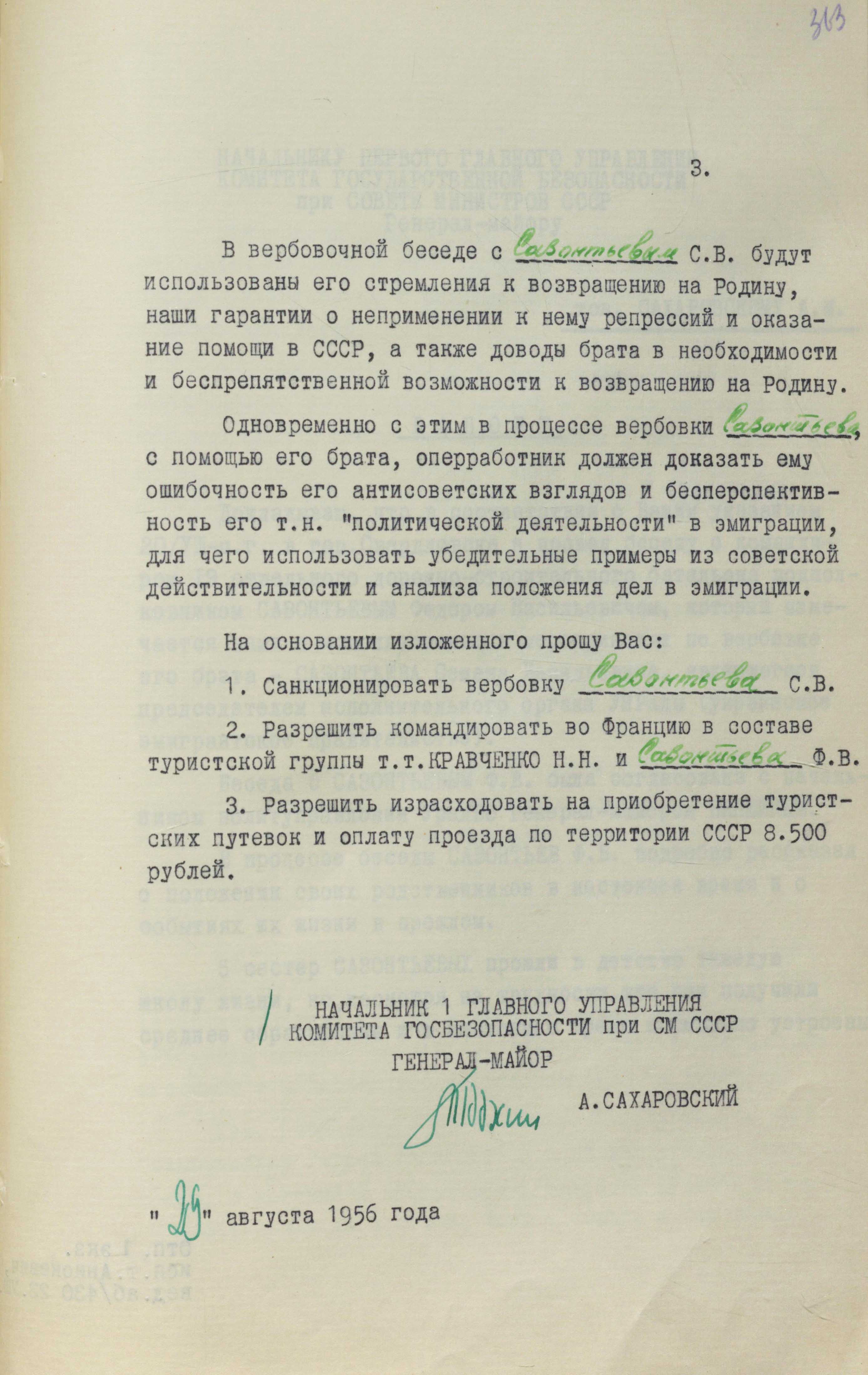 “Given Sozontiv’s desire to return to his homeland and his situation in exile, we consider it expedient to recruit him for the purpose of bringing him to the ussr and using him in measures to undermine émigré organizations and compromise their leaders.