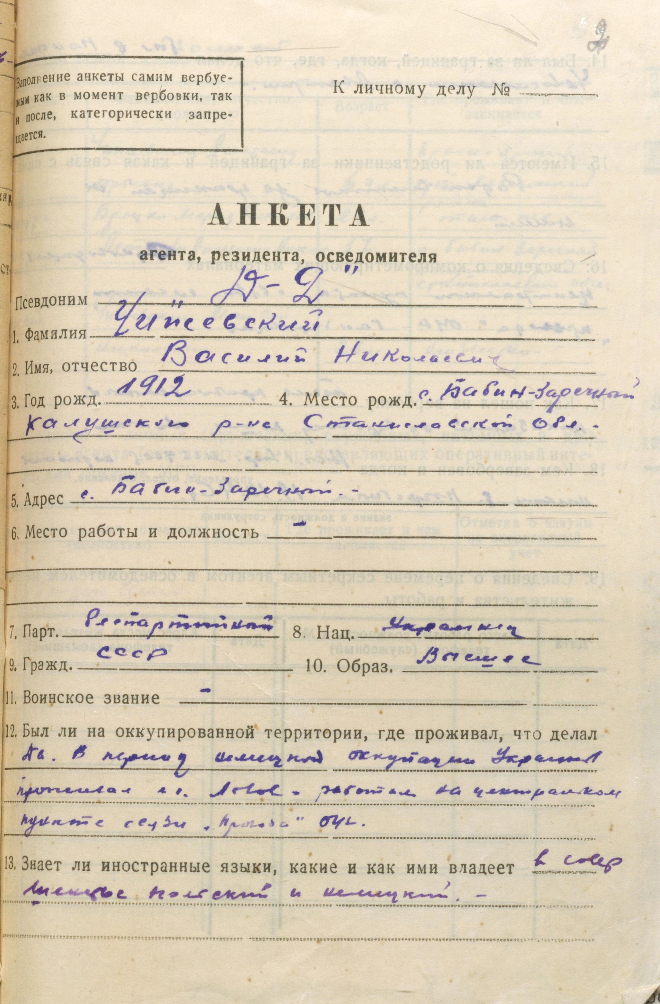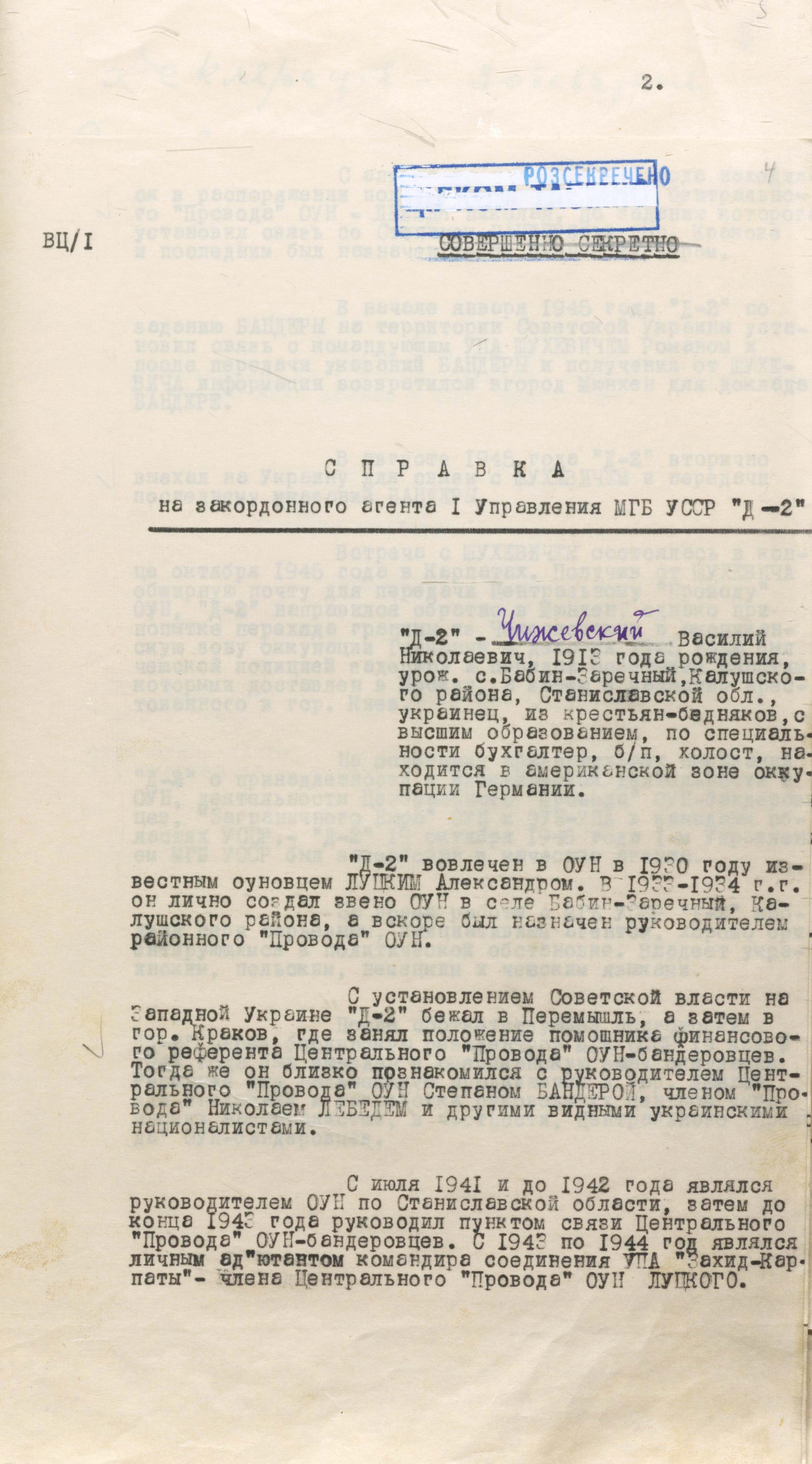 Агент мдб урср «Д-2». Перевірку в СБ ОУН не пройшов