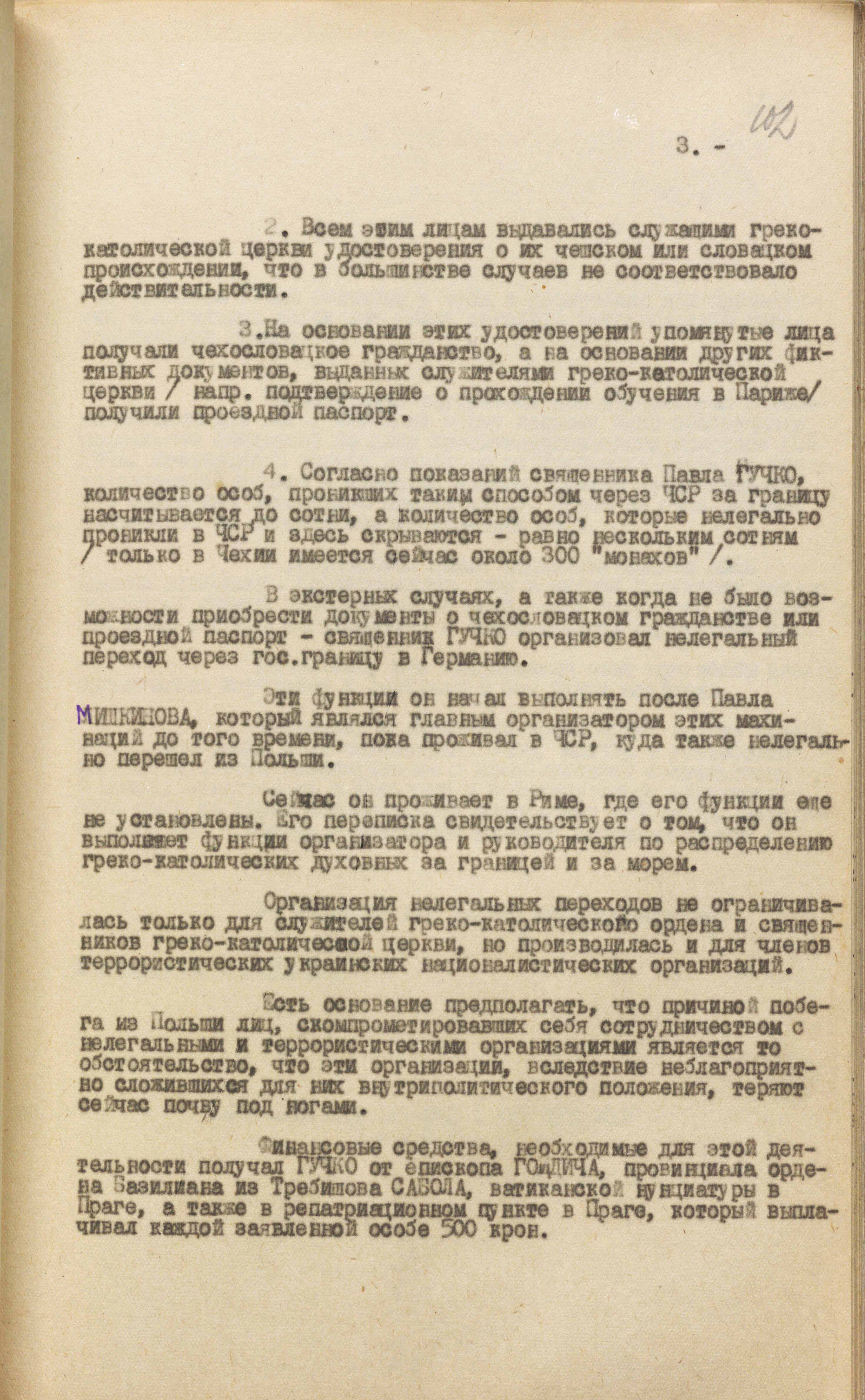 Про тих, хто втік від переслідування на радянській території, повідомлялося окремо. Наводилися свідчення священника П. Гойдича, отримані під час допиту. З його слів, представники греко-католицької церкви у Чехословаччині надавали утікачам документи про їхнє чеське або словацьке походження. На підставі цього люди отримували чехословацьке громадянство і могли спокійно надалі мешкати в країні. Таких на момент його арешту нібито було кілька сот осіб, з них близько 300 – греко-католицькі монахи. Декому додатково надавали довідки про їхнє навчання в Парижі, що давало змогу отримувати проїзні документи для виїзду за кордон. Таких набралося близько сотні. Тобто це були священнослужителі й вірні, яких рятували від арешту, заслання, переходу на службу до російської православної церкви. За матеріалами ж слідства такі дії вважалися кримінальним злочином.