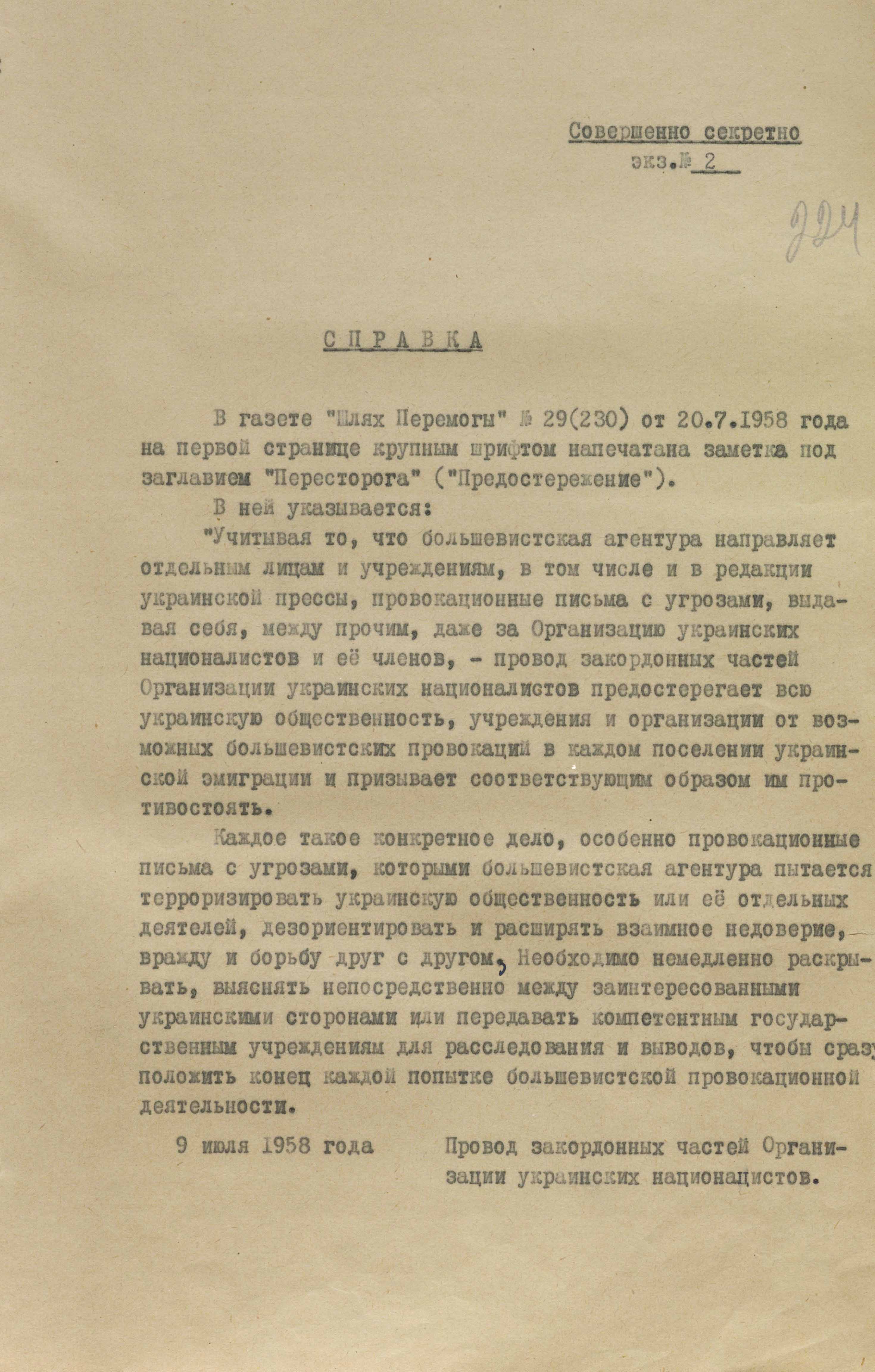 According to declassified documents, after the first leaflet appeared, members of the OUN’s foreign units gathered for a special meeting to discuss the situation. Ivan Kashuba, who was in charge of OUN intelligence, immediately stated that this was not the work of Ukrainian emigrants. At the same time, he pointed out that the leaflets still had a certain influence on some ordinary members of the Organization, so it was necessary to actively work to expose those behind them. He was supported by one of the leaders of the OUN Security Service, Stepan Mudryk. They soon came to the conclusion that the leaflets were being produced in the GDR and from there were finding their way into West Germany.
