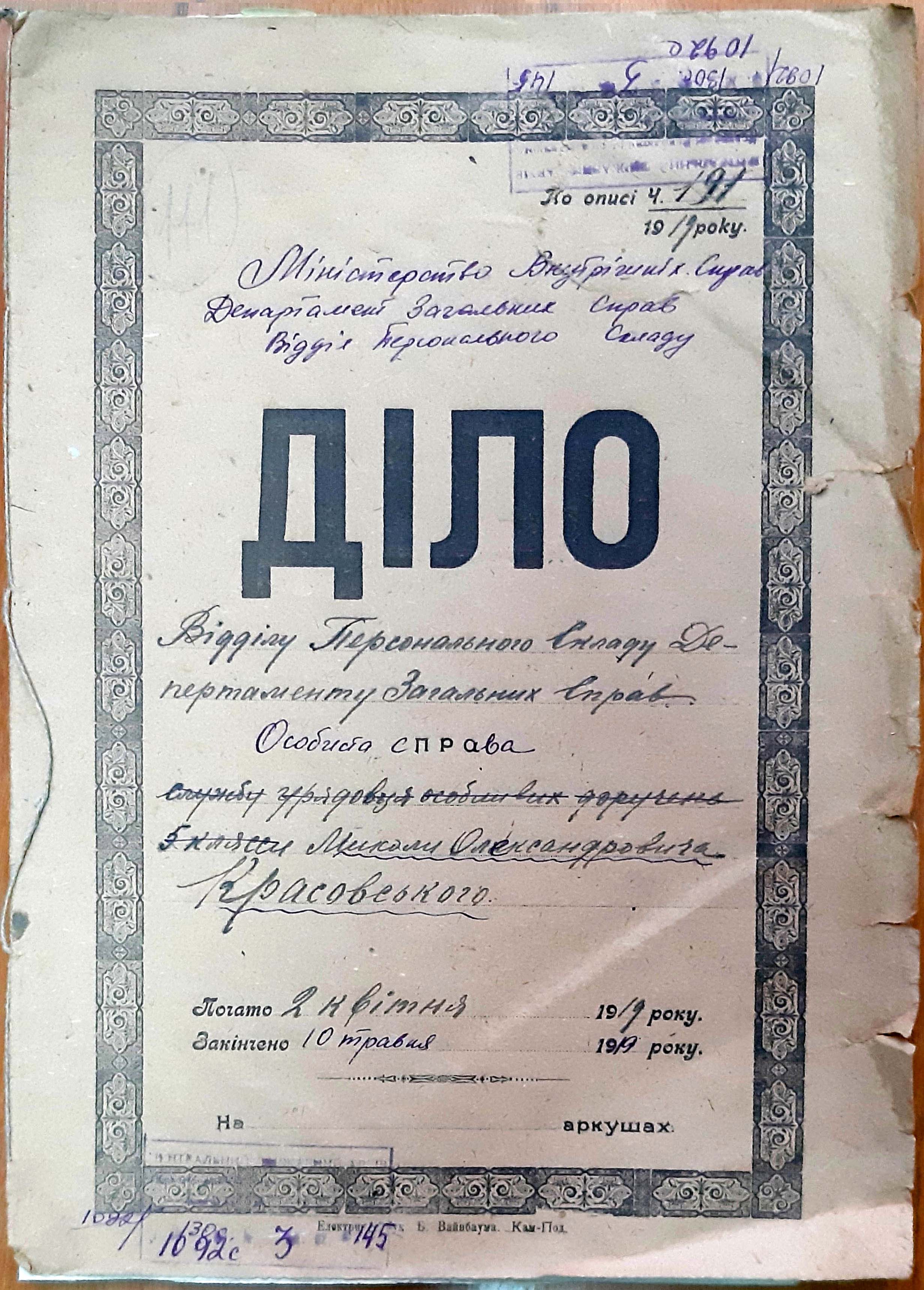 Нещодавно знайдені в Галузевому державному архіві Служби зовнішньої розвідки України документи доповнюють цю інформацію. Зокрема, у справі з назвою «Петлюрівці. 1922» зберігається рукописний звіт, виконаний олівцем 1 вересня 1922 року і з підписом «Камінський». У ньому йдеться про приїзд цієї особи до Львова і про його зустріч з М. Красовським, яка відбулася 22 серпня. Під час зустрічі обговорювали питання про переправлення повстанських груп на територію України.