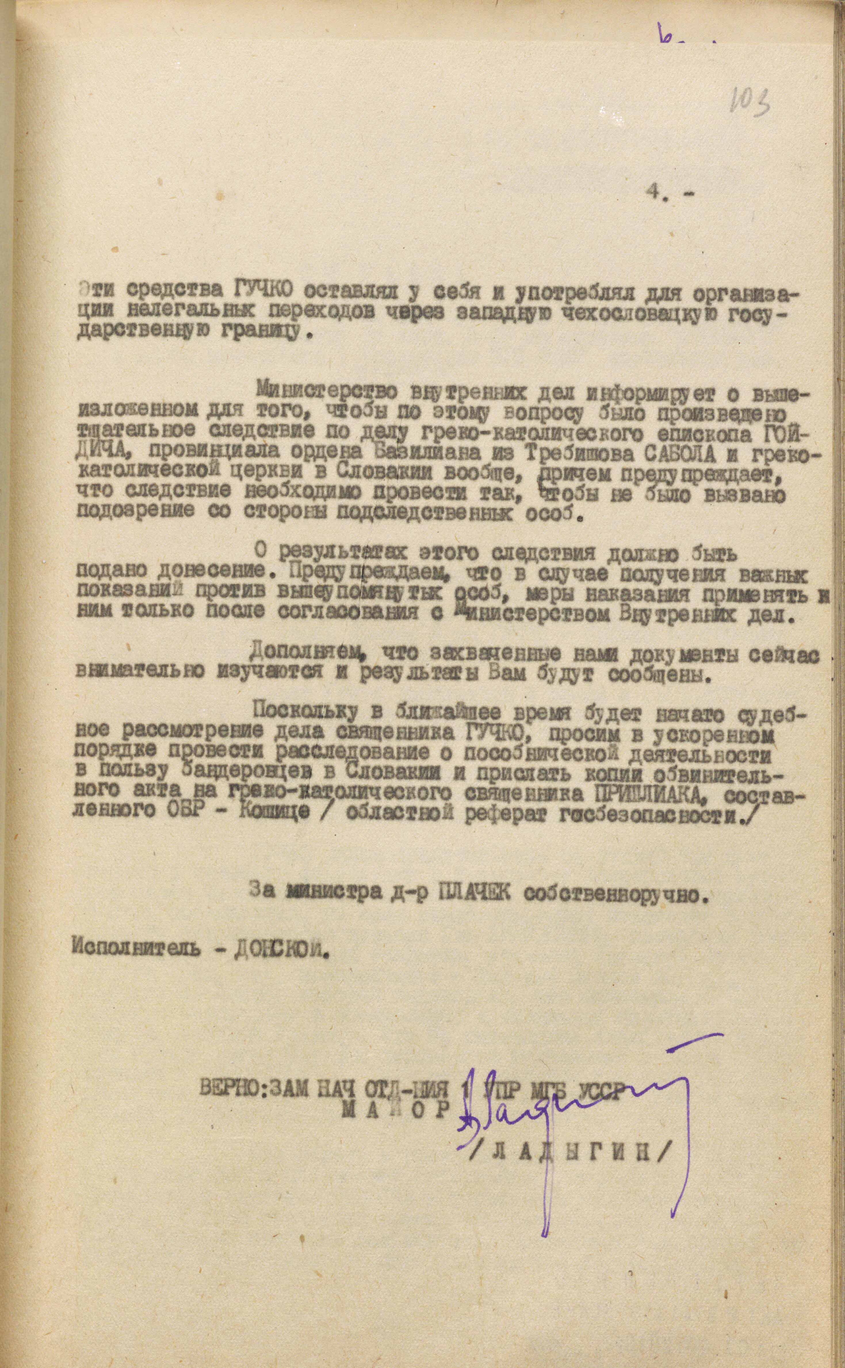 «Цими документами встановлюється, що єпископ Пряшевської єпархії Павло Гойдич займає керівне становище в антирадянському українському націоналістичному русі.